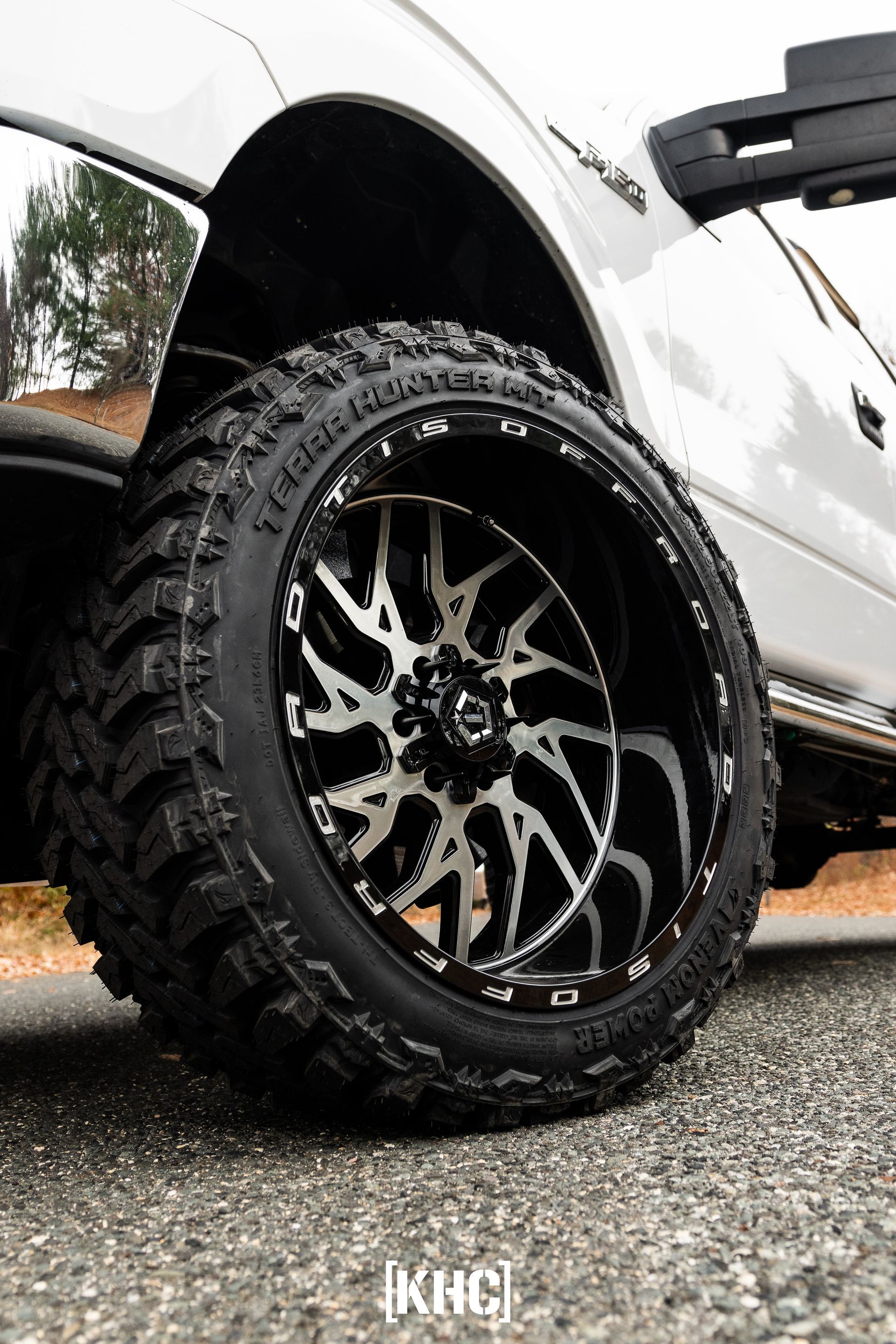 This truck’s got a clean but aggressive setup—starting with a 6-inch Rough Country lift kit that gives it that perfect stance without being over the top. It’s sitting on TIS Offroad wheels wrapped in Venom Power Terra Hunter MT tires (33x12.5R22), so it looks just as tough as it feels on the road.
