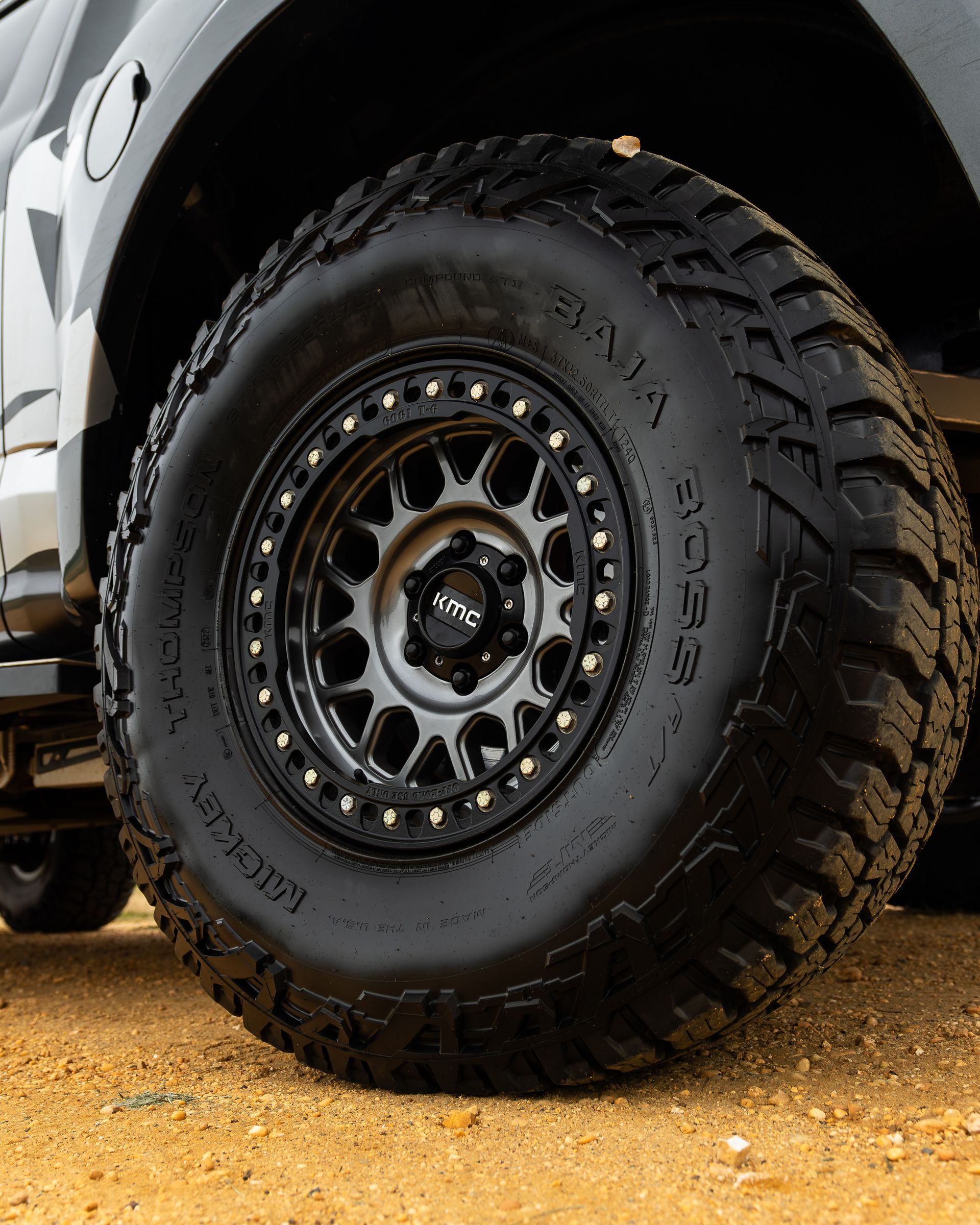 This build is next-level ready for anything. It’s rocking ADV +2 suspension front and rear with KHC custom bumpers, a mid-travel kit, and knuckle lights designed specifically for it. The rear has a hidden hitch, dual tire carrier, and a one-off 3-link setup with trailing arms and a bed cage. Fox 3.0 and 3.5 coilovers front and rear, RCV axles, and a fully floater-modified 9 ¾ mean this truck handles as good as it looks. KHC armor, running boards, mud flaps, and custom tailpipes make it both tough and functional, while the AFE intercooler, Cobb intake, turbo smart BOV, and MPT PRX tune keep it running like a beast. Add in Mickey Thompson 37s on KMC beadlocks, Alcon brakes, Garmin nav, and Baja Designs lights everywhere, and this truck isn’t just built—it’s fully dialed, unstoppable, and ready to dominate any terrain.
